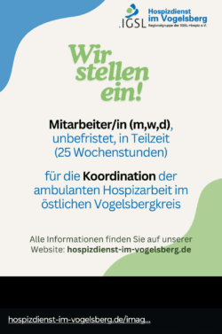 Dringend gesucht! Mitarbeiter/in (m,w,d) für die Koordination des ambulanten Hospizdienst Lauterbach/Vogelsbergkreis